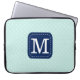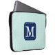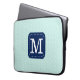 Elegante manga portátil con monograma personalizado sobre fondo azul menta.