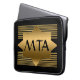 Fondo negro con diseño geométrico digital dorado en negrita con un toque Art Déco. Monograma personalizado en el centro
