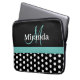 Funda Para Portátil Monograma verde verde azulado Punto de Polka Blanc