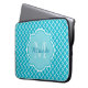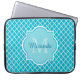 Funda Para Portátil Monograma y nombre del Cuatrefoil Azul Turquesa