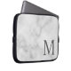 Funda Para Portátil Monograma y nombre personalizados de mármol blanco