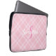 Funda Para Portátil Monograma y nombre personalizados Pink Plaid Gingh