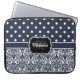 Funda Para Portátil Monogramado azul marino Damask Polka Dot