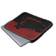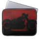 Para mantener tu ordenador portátil seguro y con un gran estilo. Una silueta negra gráfica de una motocicleta sobre un fondo de grano rojo textura impresa
