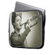 Mujer joven en jugar uniforme de los soldados en la trompeta, (B&W), marcas del retrato el | George el | AssetID: 57520101
