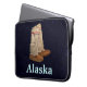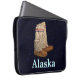 Mi par favorito de mukluks con texto que dice "Alaska" en azul brillante y blanco sobre un fondo estrellado. Muy superior a las botas de invierno estándar, un buen par de mukluks y calcetines gruesos, mantendrán los pies en buen estado y tostados, sin importar el frío que pueda ser. Mantienen mis pies calientes incluso a temperaturas inferiores a 60 grados Fahrenheit.