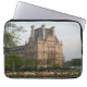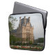 Esta es una sección del Museo del Louvre en París, Francia. Esta foto fue tomada en primavera, y los tulipanes pueden verse en primer plano. Es una hermosa captura de la fachada del edificio.