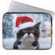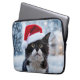 Un gato blanco y negro lindo con un sombrero de Santa.