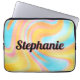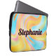 Este funda portátil cuenta con un moderno diseño de remolino de neón arco iris. Personalízalo con tu nombre o iniciales.