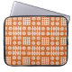 Una manga para portátiles Neoprene de muy moda, con un patrón de motivos tradicionales de tapiz galés en blanco sobre fondo rojo ladrillo.