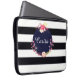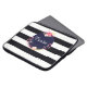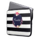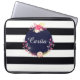 Manga portátil de 15" con un patrón rayado en blanco y negro. En el centro del funda, hay un monograma floral en el que puede añadir su nombre o inicial usando la plantilla.
