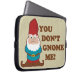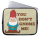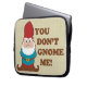 Un lindo gnomo con el divertido juego de palabras "No me jodas". Gorra rojo, camisa azul, zapatos marrones.