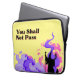 Mago dibujado a mano levantando a su personal con un gato en su lado con un fondo humeante. El mensaje "No pasarás" en un mensaje sarcástico como manga de portátil. Sígueme en Instagram: https://www.instagram.com/the_beekeeper_store/
