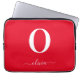Funda Para Portátil Nombre de guión de monograma personalizado rojo y