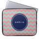 Funda Para Portátil Nombre personalizado Monograma azul claro y rosa