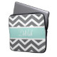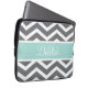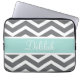 Funda Para Portátil Nombre Verde azulado de Chevron blanco gris