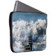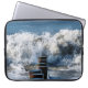 Un diseño fotográfico de olas golpeando el rompeolas. Gales Reino Unido.