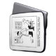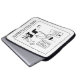 Manga de cubierta para portátil óptico. El ilustracion personalizado muestra un óptico que le da al cliente una prueba visual. Luego de un comentario del cliente, el óptico revisa la ortografía en la letra pequeña de su gráfico de prueba visual y le dice al paciente: "Tienes razón - han escrito 'Impreso en China' incorrectamente".