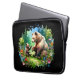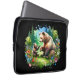 Un oso mami jugando con su bebe oso afuera en un campo de hierba y flores con un fondo de pino. Estilo acuarela ai art.