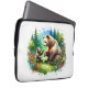 Un oso mami jugando con su bebe oso afuera en un campo de hierba y flores con un fondo de pino. Estilo acuarela ai art.