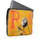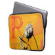 Ampolla seca blanca y negra en un fondo amarillo vibrante con "P" decorativo rojo. Una impactante imagen gráfica floral con el nombre de amapola en inglés y latín. Un toque de color para mantener tu portátil!