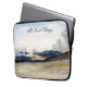 Un cuadro paisajístico acuarela de un cielo de invierno colorido adorna esta manga de ordenador portátil. Personalizar cambiando el texto para que se adapte a sí mismo.