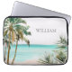 Funda Para Portátil Palm Tree tropical monogramada deja playa azul
