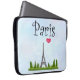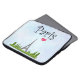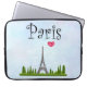 Manga portátil con un caprichoso dibujo de la Torre Eiffel rodeada de árboles verdes y de un corazón de acuarela rosa flotando en el aire.