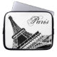 Manga adaptable del ordenador portátil con el ilustracion blanco y negro de la torre Eiffel en París, Francia.