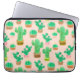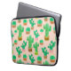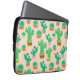 Un patrón de varios tipos diferentes de cactus plantados en diferentes colores de ollas. Se colocan sobre un fondo rosa claro y están rodeados de formas de aguja de cactus. Cada cactus está pintado con acuarelas en tonos verdes.