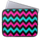 Un divertido, de moda y divertido patrón de rayas de chevron en rosa caliente, turquesa y negro en una manga de un portátil.