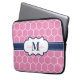 Funda Para Portátil Patrón geométrico de monograma rosa y naval