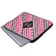 Esta funda personalizada para una laptop giratoria presenta un patrón geométrico colorido (cuadrados) en rosa, purpurina púrpura, negro y blanco. El monograma grande y el nombre en el tipo de letra del guión de bonito se enmarcan en el centro en sombras coincidentes.
