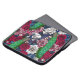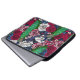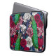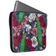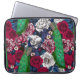 Patrón dibujado a mano con pavos reales y varios rosas sobre un fondo oscuro