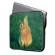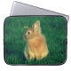 Pequeños conejo/conejito muy lindos, peludos en el color anaranjado que se sienta en hierba verde de la primavera. Paisaje hermoso de Pascua.