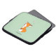 Pequeño zorro adormilado con orejas grandes y cola buscada está sentado y bostezando. Una pequeña mariposa está sobrevolando.
