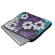Un diseño abstracto de flores moradas y blancas en agua con gotitas violetas