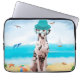 El perro lindo sentado en la playa es un regalo perfecto para alguien que ama esta raza de perro.