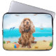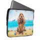 El perro lindo sentado en la playa es un regalo perfecto para alguien que ama esta raza de perro.