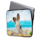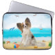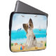 El perro lindo sentado en la playa es un regalo perfecto para alguien que ama esta raza de perro.