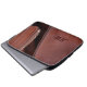Esta manga portátil, inspirada en el cuero marrón rico y en un cremallera de latón sin cremallera, se parece a un cuero fino con tuberías y costura. Es un giro divertido en el cuero falso. Esta imagen es fotografía original de JLW_PHOTOGRAPHY