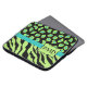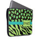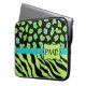Personalice con sus iniciales de nombre o monograma para un funda elegante para portátiles. Las estripas de cebra coloridas y las pieles de chita para el diseño gráfico son una de las tendencias artísticas y de diseño más llamativas, y son muy populares de la moda a la decoración casera. Este sofisticado color negro y verde de línea con una colección de huellas de gebra verde azulada turquesa y chita es una de las varias combinaciones de colores disponibles. Un emblema verde de línea crea un área de personalización. Este es el personalizable completo de personalizar para incluir su nombre, iniciales de monograma, nombre comercial u otras palabras para transmitir su mensaje. ¡Descansa con estos diseños de piel salvaje!