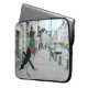 Esta manga portátil presenta la imagen de mi personalizado de una pichón dapper con un gorra, silbando una melodía alegre y llevando un paraguas, caminando por una calle urbana.