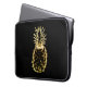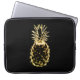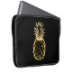 Un contorno dorado garabateado de una piña brilla contra un fondo negro.