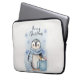 Un encantador ilustracion invernal de un adorable pingüino vestido con un gorra y una bufanda a rayas azules, con un ambiente acogedor y festivo. Los suaves copos de nieve y los suaves tonos azules crean un ambiente mágico de invierno. Perfecto para tarjetas de Navidad, posters, pegatinas y artesanías de temporada.