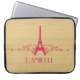Elegant and chic French Flourish Laptop Sleeve featuring a faux woodgrain look background and an Eiffel Tower design in magenta adorned with cascades of stylish swirls. This girly and trendy design is easy to customize with the personalized text of your choosing. Click "Customize It" to find more personalization options.