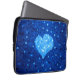 Manga portátil de corazón azul con un hermoso ilustracion abstracto de un corazón cristalizado hecho de pequeños polígonos en diferentes tonos azules. Esta elegante obra de arte da una sensación de frío e invierno.