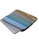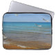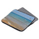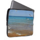 Vibrante fotografía de gaviotas volando bajo la línea costera de una playa de arena dorada.
