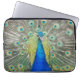 Manga protectora con cremallera para portátiles que muestra la imagen de la foto de un hermoso pavo real azul con plumas coloridas. Imagen impresa en un lado. Seleccione el tamaño de la manga del portátil. NOTA: La imagen está impresa en un solo lado de la manga.