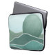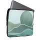 Bonito, sencillo y minimalista arte Boho Zen, que representa la luna azul sobre las montañas azules, en tranquilos tonos azules y verdes, con líneas blancas estéticas para un diseño limpio y minimalista.